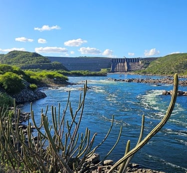 Estamos na margem do Rio São Francisco, em frente a Usina Hidroeletrica de Xingó